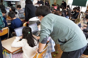 1月20日(火)、22日(木)、23日(金)、27日(火)、3月4日(水)西小学校にて3年生、4年生を対象にScratchを用いたプログラミング授業を行いました。