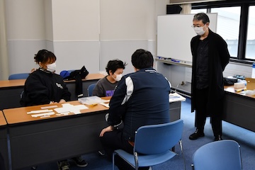 11月27日(木)13号館大学院演習室を会場として本学社会貢献プログラム「Scratchを使ったLチカプログラミング体験」を北見市立端野中学校の3名の生徒さんに体験いただきました。
